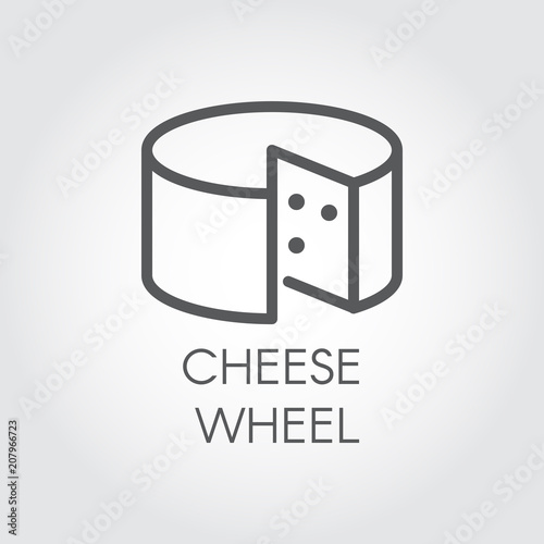 Cheese Wheel Thin Linear Icon Dairy Product Line Label