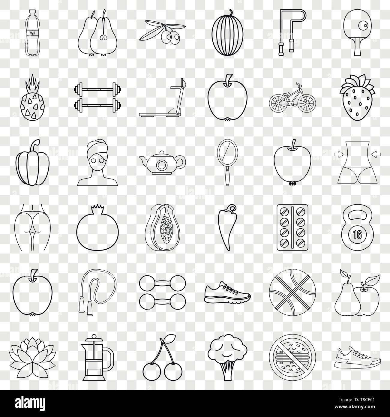 Healthy Food Icons Set Outline Style Stock Vector Art