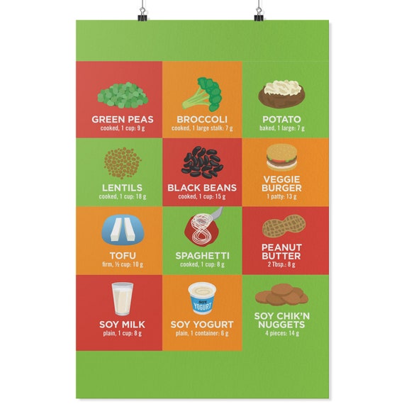 Vegan Nutrition Motivation Poster Vegetarian Protein Sources Healthy Food Eating Inspirational Wall Art