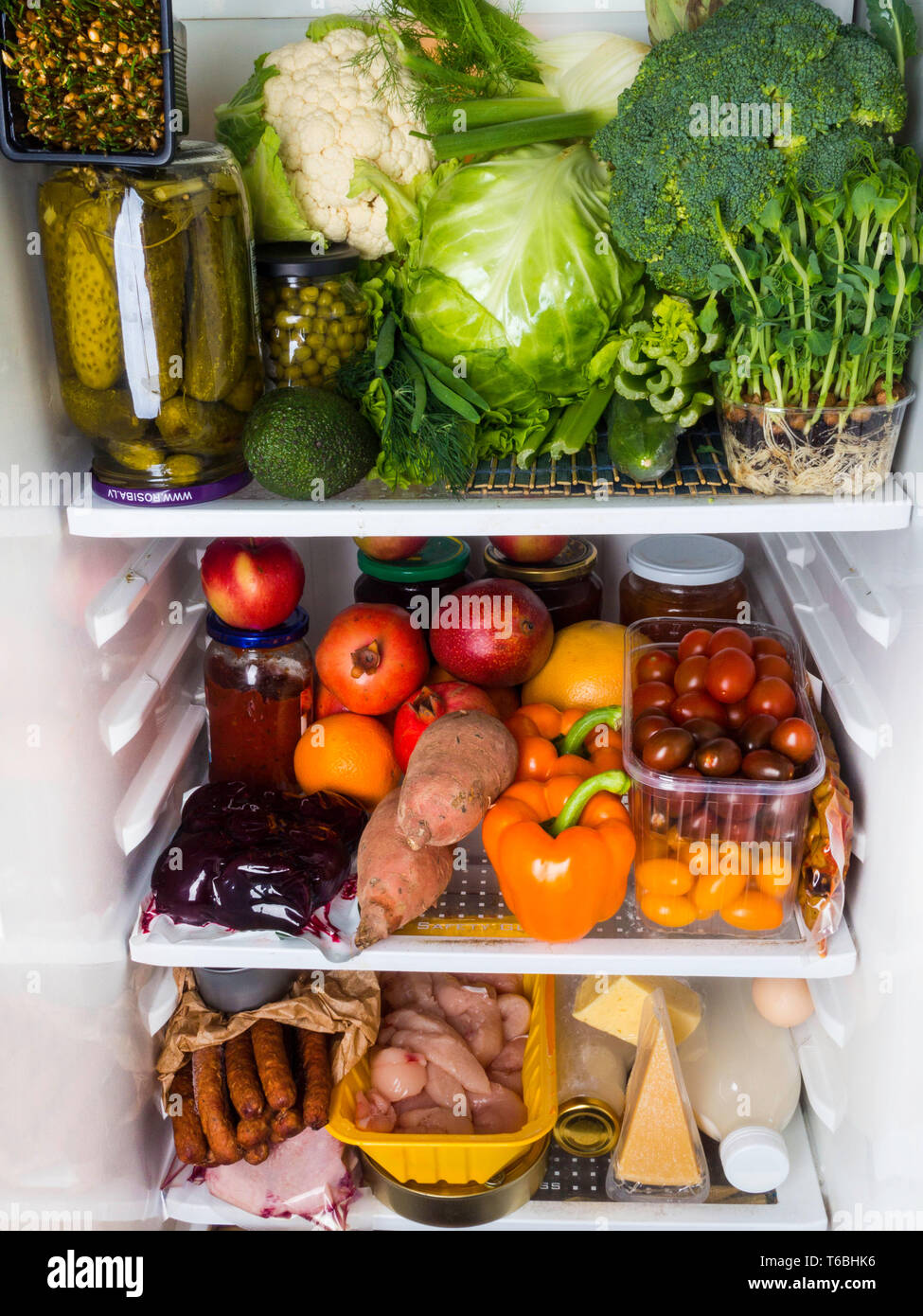 Open Fridge Full Of Fresh Fruits And Vegetables Healthy