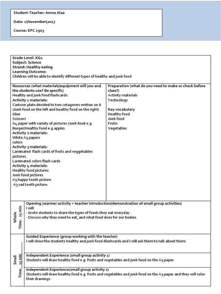Pdf Healthy Eating Habits Lesson Plan Of A Science Lesson
